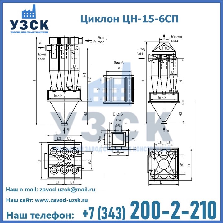 Завод «УЗСК» в Химках предлагает большой выбор циклонов ЦН-15-700×6СП и прочих устройств, полностью укомплектованных и готовых к эксплуатации. Мы гарантируем соответствие оборудования всем требованиям ГОСТ и ТУ, износостойкость и высокую производительность предлагаемого оборудования. Уральский Завод Стальных Конструкций изготавливает и продает надежное, эффективное и производительное оборудование, имеющее длительную гарантию и большой эксплуатационный ресурс. Если требуется изготовить циклон нестандартных размеров, то такой вариант выполнения заказа тоже предусмотрен, так как предприятие имеет собственные производственные площади и надежных поставщиков. На все поставляемое или производимое оборудование имеются чертежи и прочая техническая документация. Заказать и купить циклоны или прочее оборудование высокого качества и по доступной цене можно через наш сайт или по указанному в разделе «Контакты» телефону.