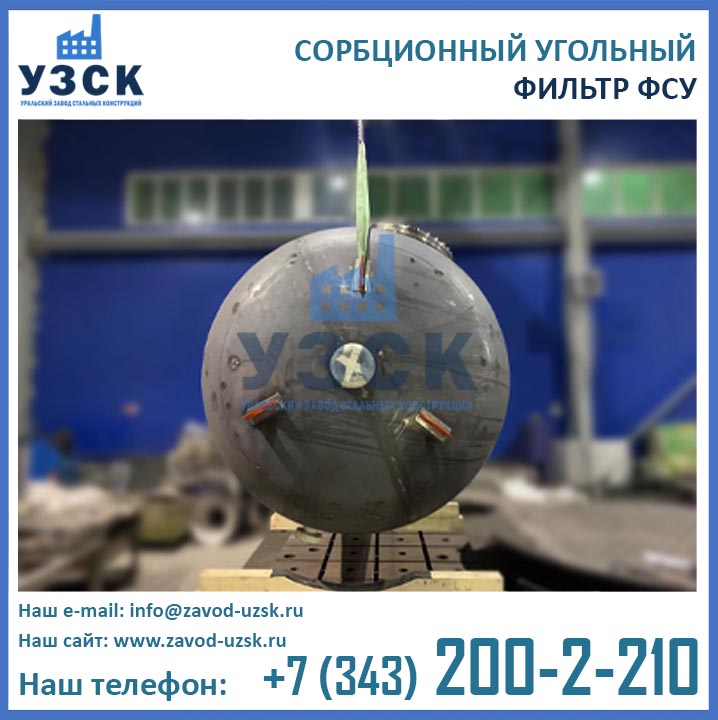 Качественную работу отопительных и промышленных котельных, линий по очистке конденсата и природных вод, электростанций обеспечивает фильтр сорбционный угольный типа ФСУ — вертикальный сосуд с одной камерой цилиндрической формы. Основное назначение оборудования состоит в глубокой очистке возвращаемого с производства конденсата от запахов, органических загрязнений и привкусов. Использование ФСУ в системах водоподготовки гарантирует очищение субстанции от масел, органических примесей, остатков нефтепродуктов до нормального значения — 0.52-1.0 мг/л. Купить в Химках угольные фильтры предлагает наш Уральский завод стальных конструкций. Мы выполняем производство ФСУ под нужды предприятия, возможно изготовление сорбционных фильтров ФСУ из нержавеющей стали включая корпус и внутренние устройства.