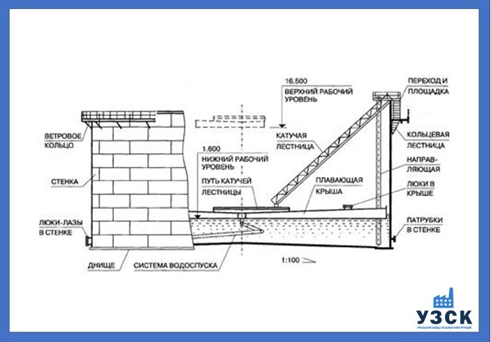 Конструкция резервуара 50 000 м3 состоит из:
